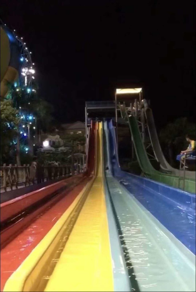 最好玩的要数大喇叭,小伙伴们各自拿一块垫子,强大的水流伴随着自由落体的惯性急冲而下,从高往下完成一次次精彩地冲浪,享受着欢乐无极限的乐趣。