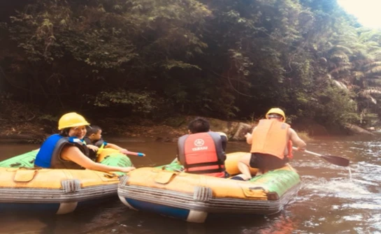 小伙伴们乘坐皮筏艇,体验着"高铁"的速度、刺激,有如时空穿梭、太空疾驰;穿越奇峰怪石,美潭跌水、原始森林、古树奇花,在激情中惊叹大自然的鬼斧神工,何为险、俏、隐、幽、奇、古、拙,在诗与画的天地间,一阵阵欢笑声成了漫长记忆中最刻骨铭心的耀眼记忆!